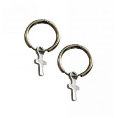 Σκουλαρίκια Κρίκοι από ατσάλι με μοτίφ σταυρός..