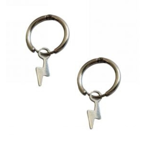 Σκουλαρίκια Κρίκοι από ατσάλι με μοτίφ κεραυνός..