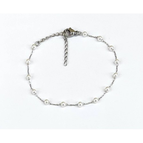 Βραχιόλι Ατσάλι Ατσάλι Με πέρλα με πέρλα μπίλια 3mm MHK:16+7cm ΧΡΩΜΑ:white..