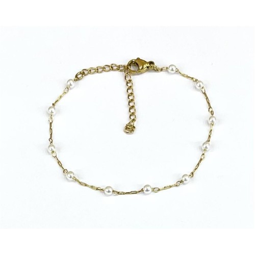 Βραχιόλι Ατσάλι Ατσάλι Με πέρλα με πέρλα μπίλια 3mm MHK:16+7cm ΧΡΩΜΑ:18k gold..