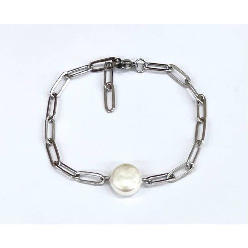 Kostibas 1513-772AL, Βραχιόλι, Ατσάλι, Αλυσίδα, Με μαργαριτάρι λευκό, Ασημί