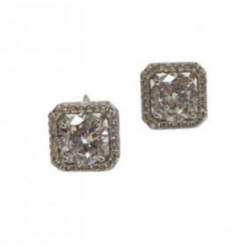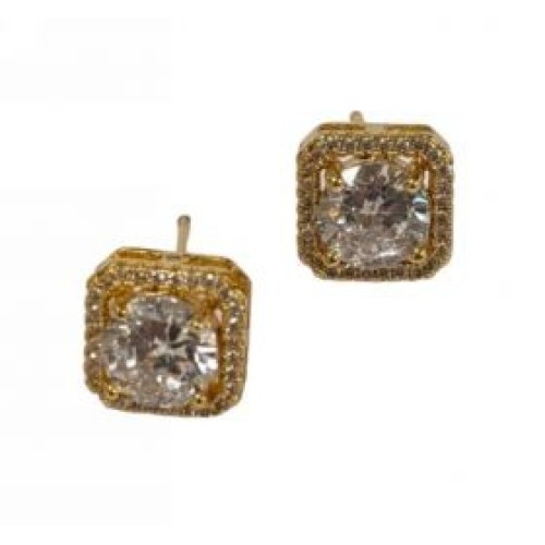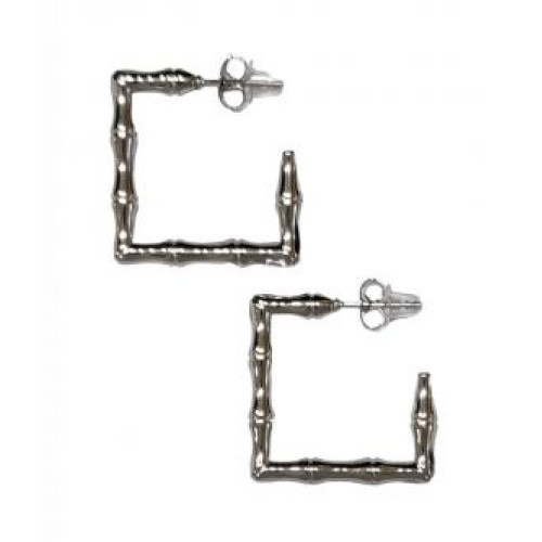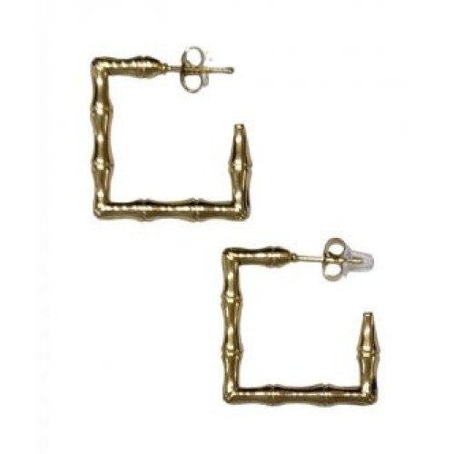 Σκουλαρίκια Κρίκοι μεταλλικοί με στρας σε τετράγωνο σχέδιο..