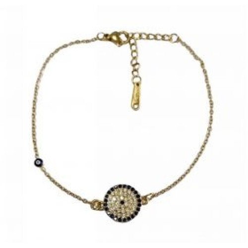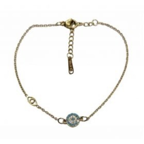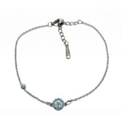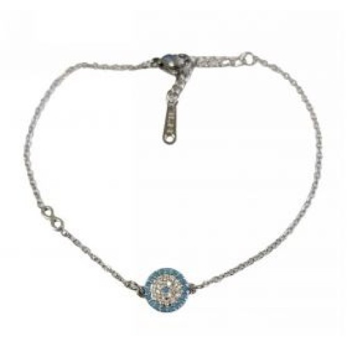 Βραχιόλι με στρόγγυλο ατσάλινο μοτίφ ματάκι σε μπλε χρώμα Διαστάσεις: 16cm (+5)..