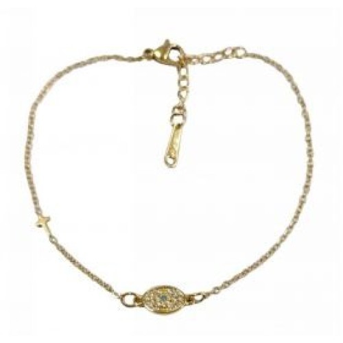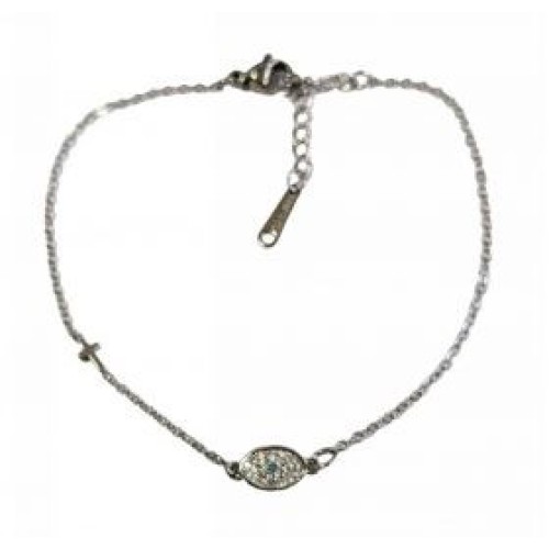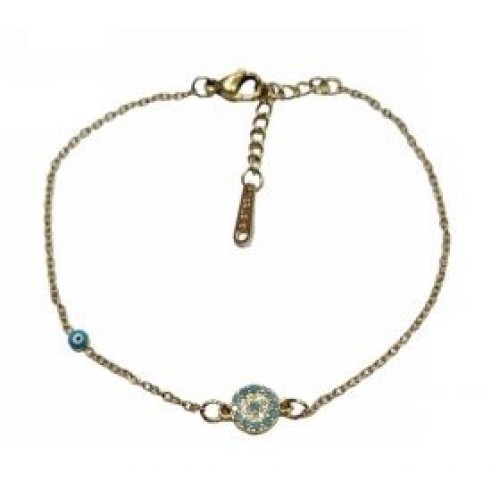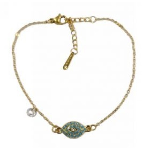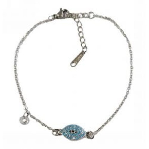 Βραχιόλι με οβάλ ατσάλινο μοτίφ ματάκι σε τυρκουάζ χρώμα Διαστάσεις: 16cm (+5)..