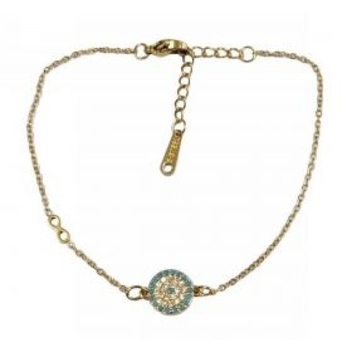 Βραχιόλι με στρόγγυλο ατσάλινο μοτίφ ματάκι σε τυρκουάζ χρώμα Διαστάσεις: 16cm (+5)..
