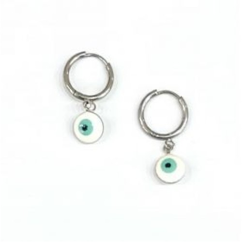 Σκουλαρίκια κρίκοι από ατσάλι με μάτι λευκό..