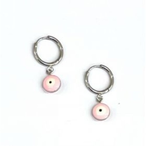Σκουλαρίκια κρίκοι από ατσάλι με ματάκι ροζ..