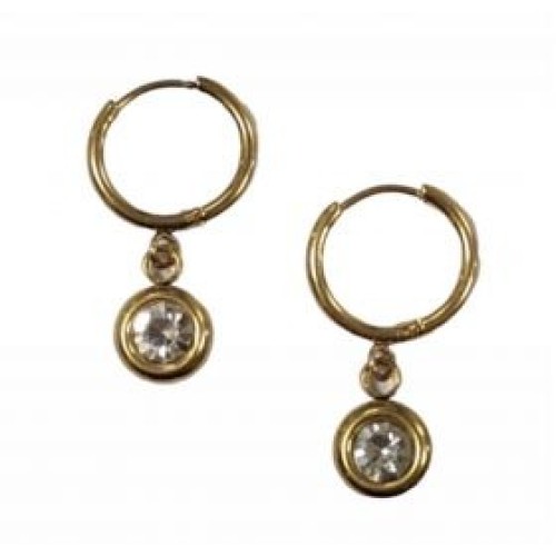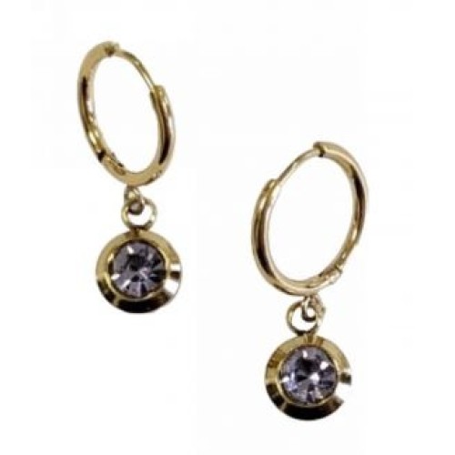 Σκουλαρίκια Κρίκοι από ατσάλι με μοτίφ στρογγυλά πομπε με γυαλί 9mm..