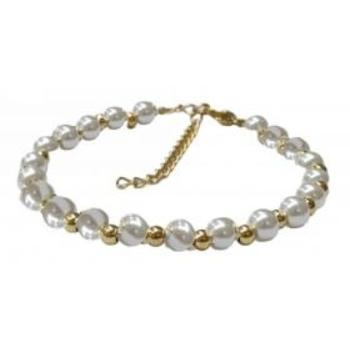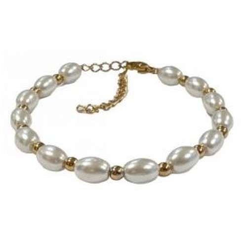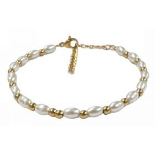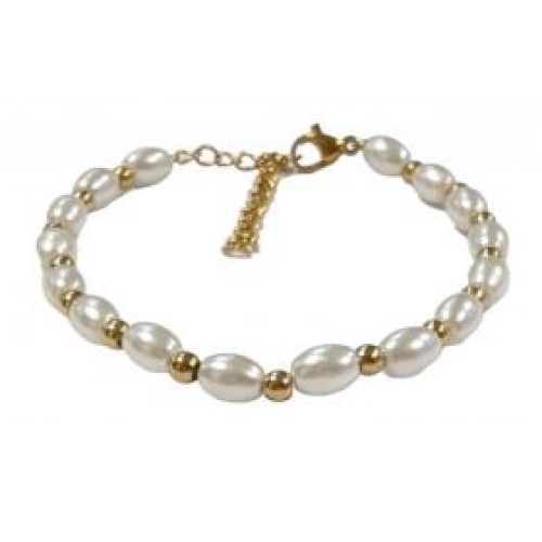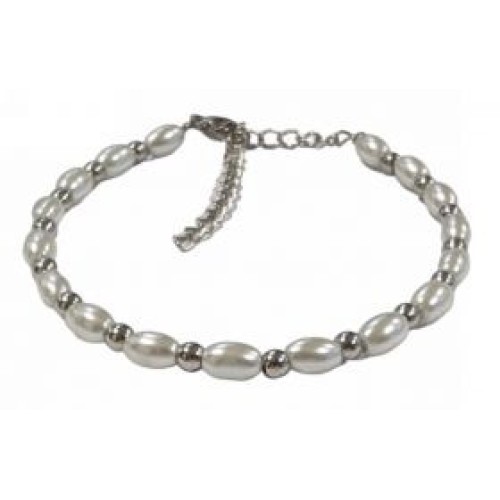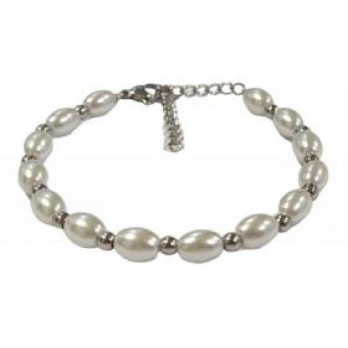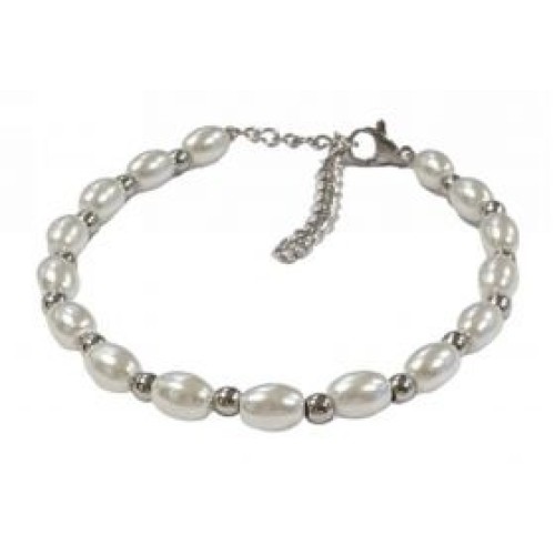 Βραχιόλι από ατσάλι με πέρλες #5x7mm Διαστάσεις: 15cm (+5)..