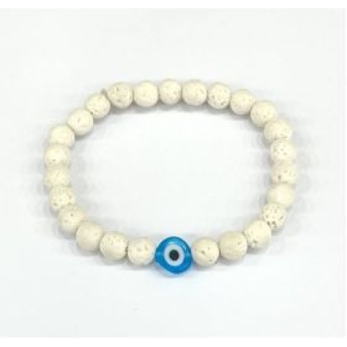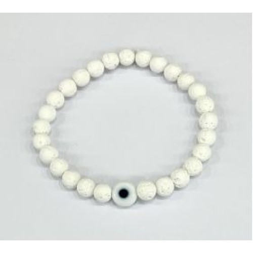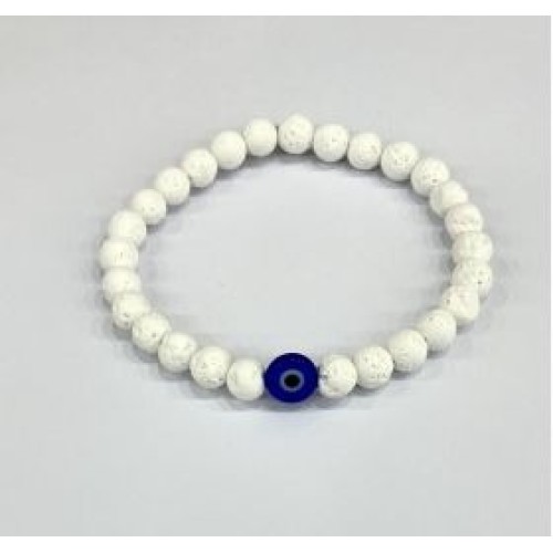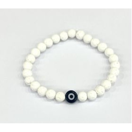 Βραχιόλι με μάτι με λευκή βαμμένη λάβα και ματάκι (6mm) ..