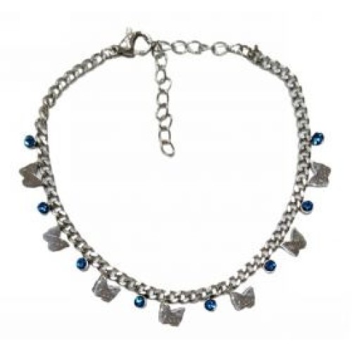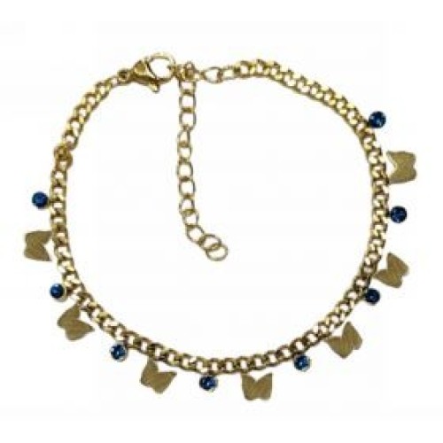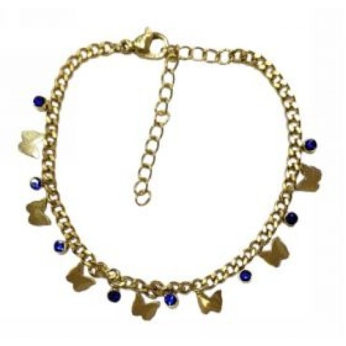 Βραχιόλι από ατσάλι με μοτίφ πεταλούδα και πέτρες σε μπλε χρώμα Διαστάσεις: 15cm (+5)..