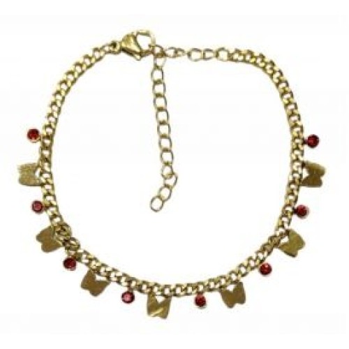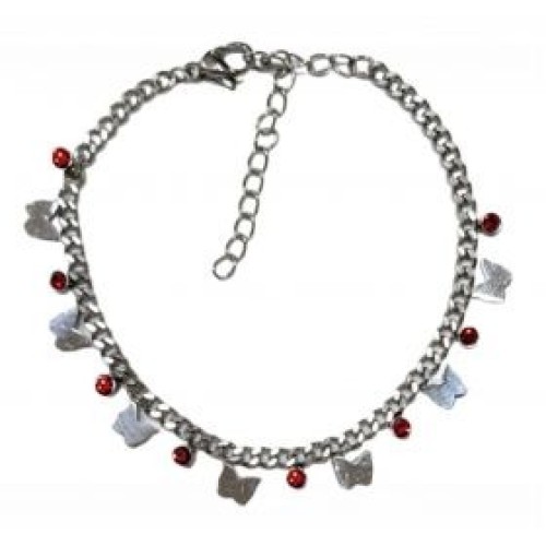 Βραχιόλι από ατσάλι με μοτίφ πεταλούδα και πέτρες σε κόκκινο χρώμα Διαστάσεις: 15cm (+5)..