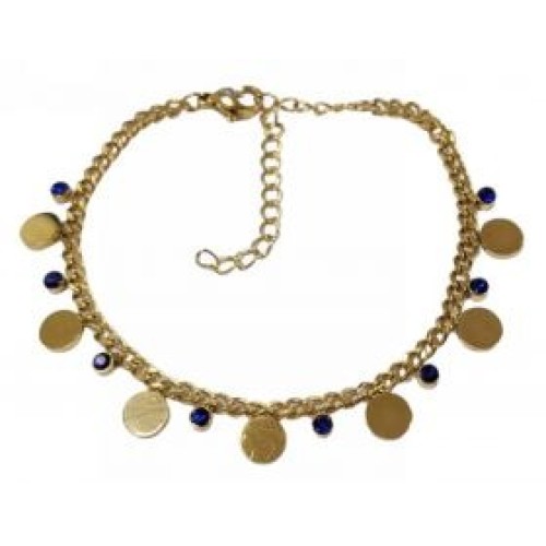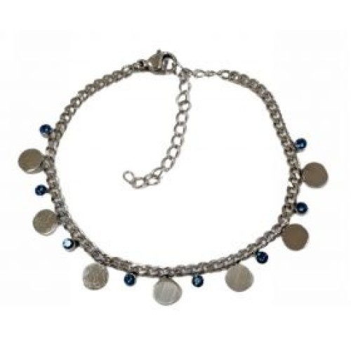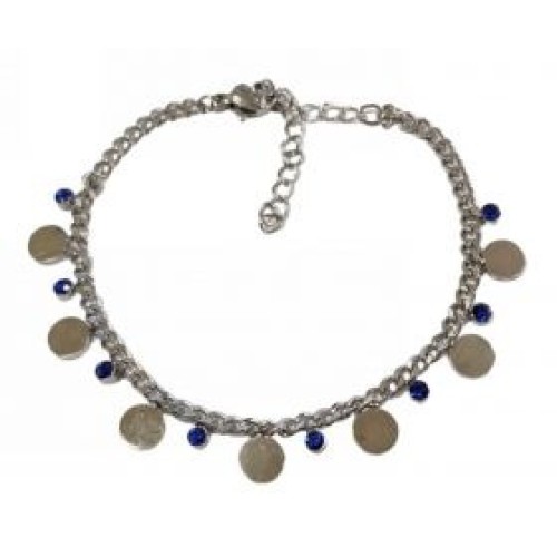 Βραχιόλι από ατσάλι με στρόγγυλα μοτίφ και πέτρες σε μπλε χρώμα Διαστάσεις: 15cm (+5)..