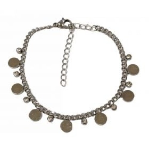 Βραχιόλι από ατσάλι με στρόγγυλα μοτίφ και πέτρες σε λευκό χρώμα Διαστάσεις: 15cm (+5)..