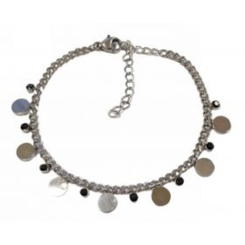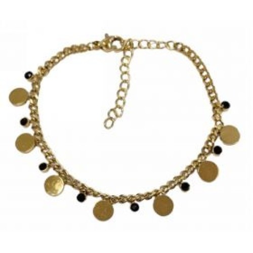 Βραχιόλι από ατσάλι με στρόγγυλα μοτίφ και πέτρες σε μαύρο χρώμα Διαστάσεις: 15cm (+5)..