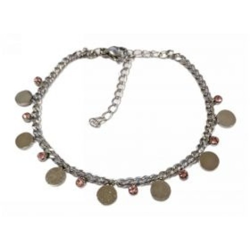Βραχιόλι από ατσάλι με στρόγγυλα μοτίφ και πέτρες σε ροζ χρώμα Διαστάσεις: 15cm (+5)..