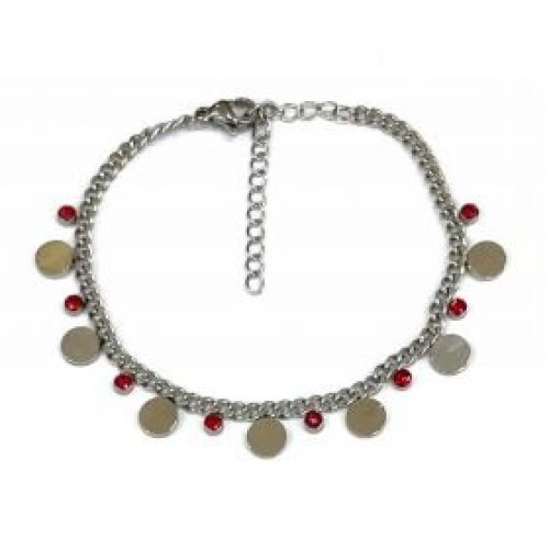 Βραχιόλι από ατσάλι με στρόγγυλα μοτίφ και πέτρες σε κόκκινο χρώμα Διαστάσεις: 15cm (+5)..