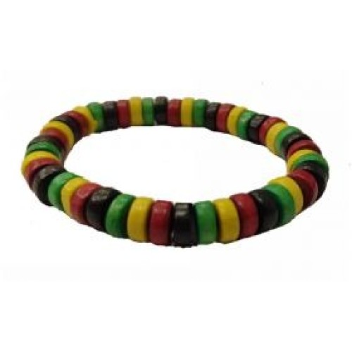 Βραχιόλι από ξύλο coconut στα χρώματα της jamaica, Bob Marley, 48 beads..
