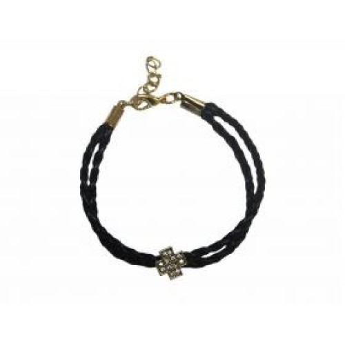 Kostibas 1521-313M, Βραχιόλι Εκκλησιαστικό, Σχοινί, Στρας, Μαύρο