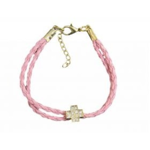 Kostibas 1521-312R, Βραχιόλι Εκκλησιαστικό, Σχοινί, Στρας, Ροζ