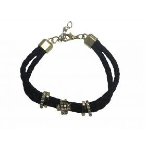 Kostibas 1521-312M, Βραχιόλι Εκκλησιαστικό, Σχοινί, Στρας, Μαύρο
