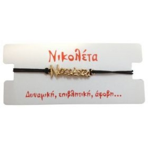 Kostibas 1539-651B3, Βραχιόλι Όνομα, Σχοινί, Χρυσό/Μαύρο, Νικολέτα