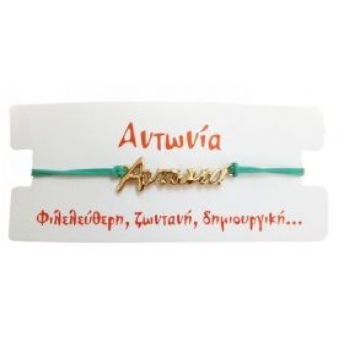 Kostibas 1539-651B8, Βραχιόλι Όνομα, Σχοινί, Χρυσό/Τιρκουάζ, Αντωνία