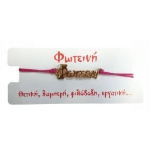 Kostibas 1539-651F4, Βραχιόλι Όνομα, Σχοινί, Χρυσό/Φούξια, Ασπασία