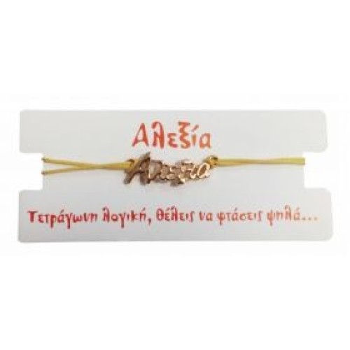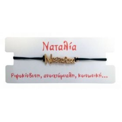 Kostibas 1539-651E1, Βραχιόλι Όνομα, Σχοινί, Χρυσό/Μαύρο, Ναταλία