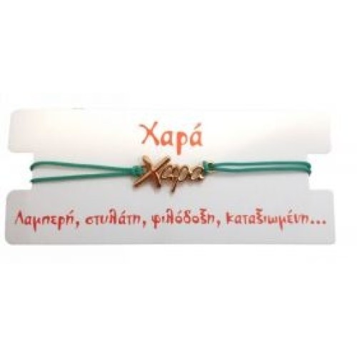 Kostibas 1539-651E5, Βραχιόλι Όνομα, Σχοινί, Χρυσό/Τιρκουάζ, Χαρά