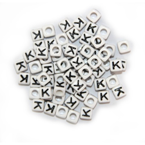 Kostibas 3897-187MK, Χάντρες, Ακρυλικό, Κύβος, Γράμμα K, Ασπρόμαυρο, 415τμχ