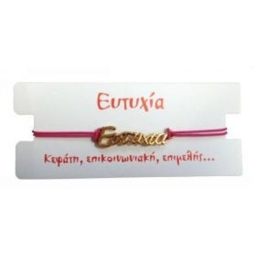 Kostibas 1539-651F7, Βραχιόλι Όνομα, Σχοινί, Χρυσό/Φούξια, Ευτυχία