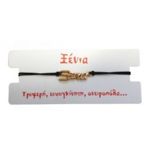 Kostibas 1539-651F8, Βραχιόλι Όνομα, Σχοινί, Χρυσό/Μαύρο, Ξένια
