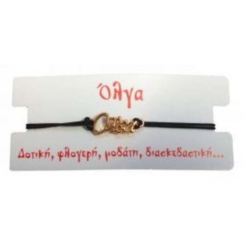 Kostibas 1539-651F9, Βραχιόλι Όνομα, Σχοινί, Χρυσό/Μαύρο, Όλγα