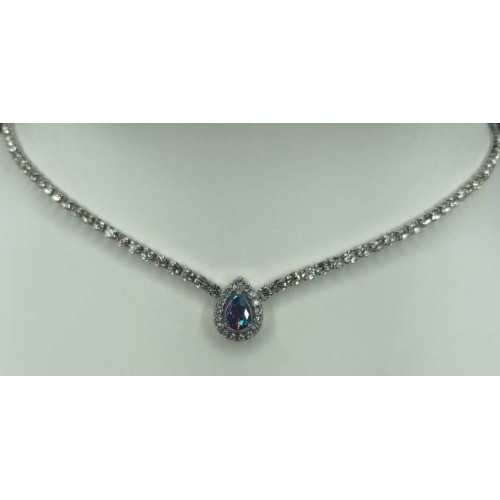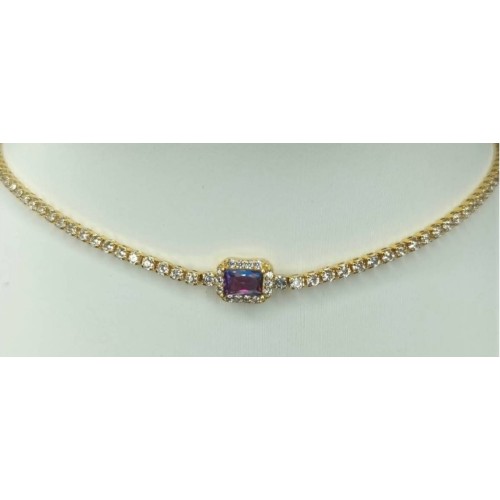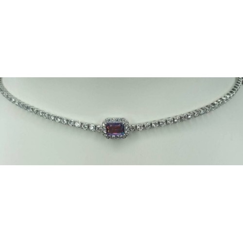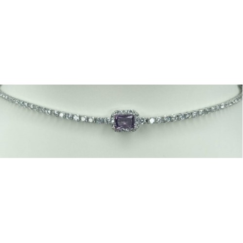 Kostibas 1012-929AJ, Κολιέ, Στρας, Ασημί με μωβ πέτρα