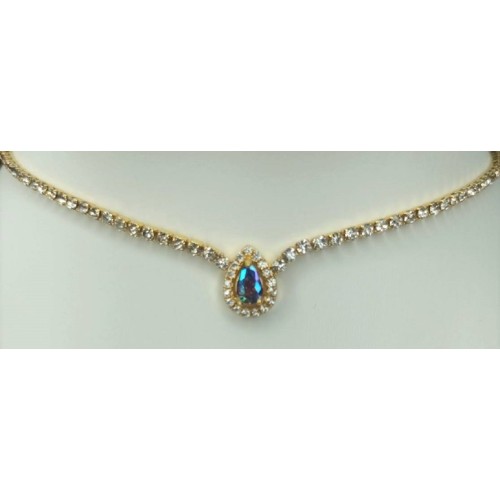 Kostibas 1012-929XB, Κολιέ, Στρας, Χρυσό με μπλε πέτρα