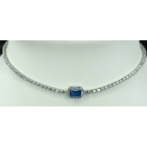 Kostibas 1012-929AB, Κολιέ, Στρας, Ασημί με μπλε πέτρα