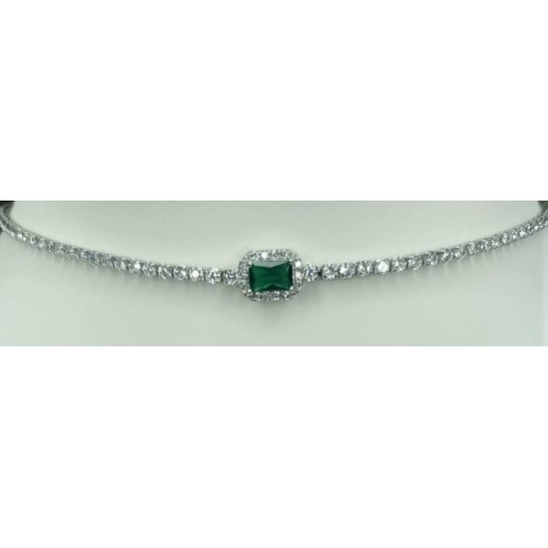 Kostibas 1012-929AP, Κολιέ, Στρας, Ασημί με πράσινη πέτρα