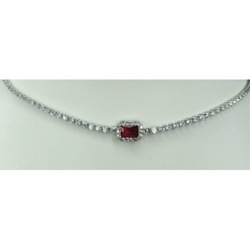 Kostibas 1012-929AD, Κολιέ, Στρας, Ασημί με μπορντό πέτρα