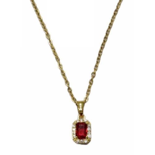 Kostibas 1013-982XD, Κολιέ, Ατσάλι, Χρυσό με Μπορντό πέτρα