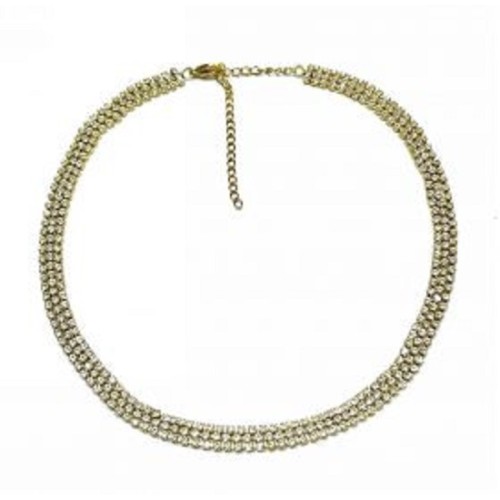 Κολιέ Ατσάλι Ατσάλι Με στρας Με τρεις σειρές στρας, 32+7cm..