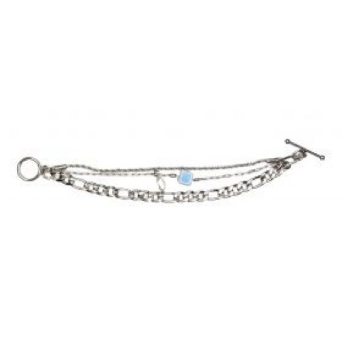 Βραχιόλι ατσάλι με 3 ατσάλινες αλυσίδες, κεραμικό μοτίφ, μαργαριτάρι 6-7mm και ατσάλινο κούμπωμα Μή..