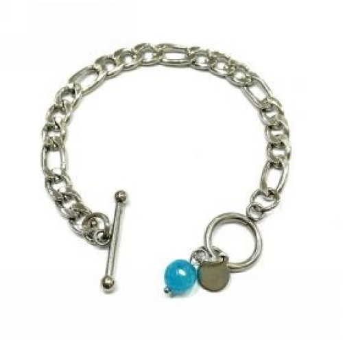 Βραχιόλι ατσάλι με αλυσίδα τύπου φακαντόρο 1,8mm, πολυγωνική πέτρα, μοτίφ και κούμπωμα..
