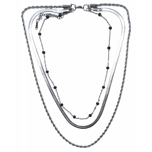 Kostibas 1013-880AM, ΤΕ, Κολιέ, Ατσάλι μιξ, Λευκό, Με μαύρες πετρούλες