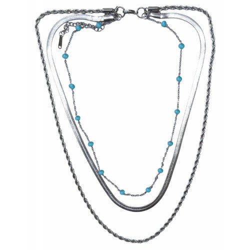 Kostibas 1013-880AT, Κολιέ, Ατσάλι μιξ, Λευκό, Με τιρκουάζ πετρούλες