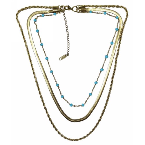 Kostibas 1013-880XT, Κολιέ, Ατσάλι μιξ, Χρυσό, Με τιρκουάζ πετρούλες