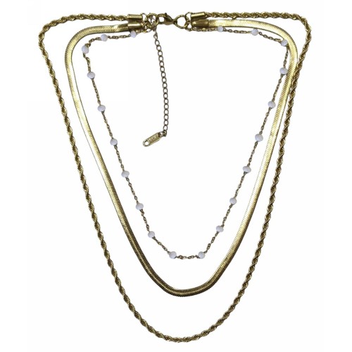 Kostibas 1013-880XL, Κολιέ, Ατσάλι μιξ, Χρυσό, Με λευκές πετρούλες