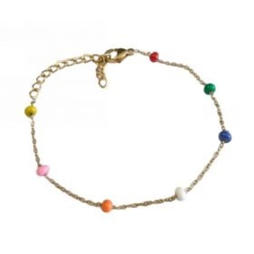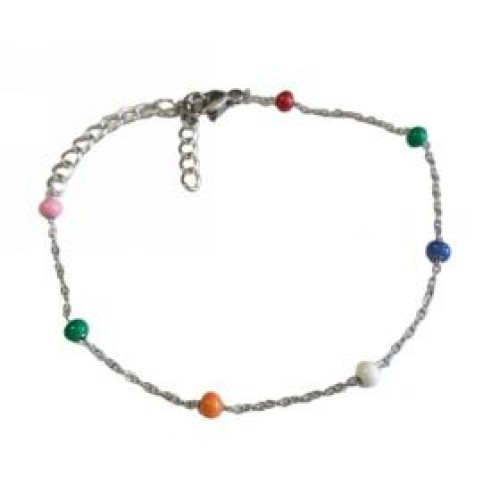 Βραχιόλι  από ατσάλινη αλυσίδα με χρωματιστές μπίλιες από σμάλτο Μήκος: 15(+5)cm..