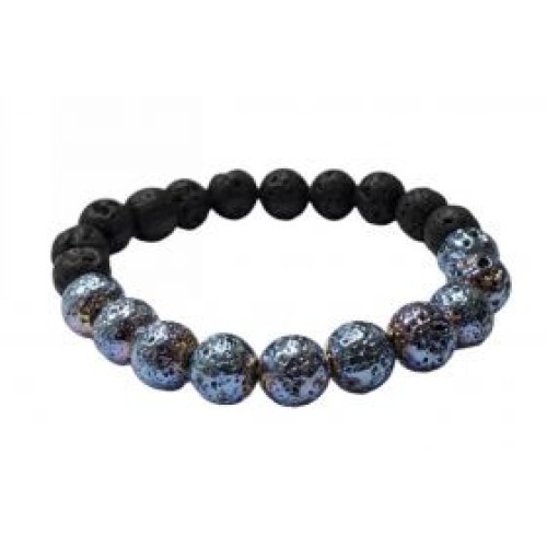 Βραχιόλι με πέτρα λάβα και αιματίτη..