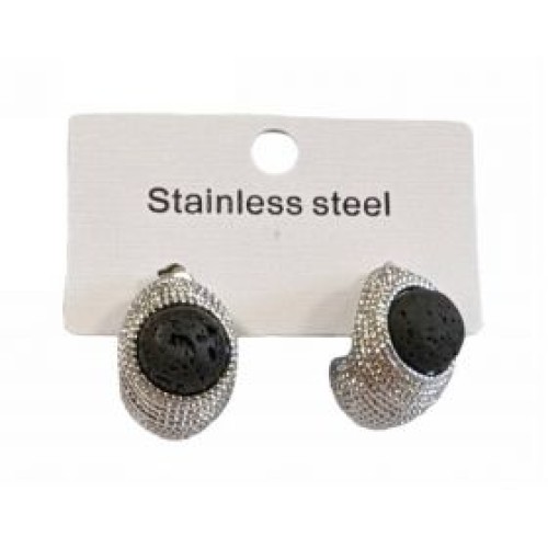 Kostibas 3113-943AA, Σκουλαρίκια Κρίκοι, Ατσάλι, Ασημί/Μαύρο